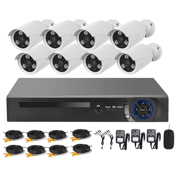 Paquets de surveillance complets avec caméras analogiques et DVR, prêts à être installés rapidement.